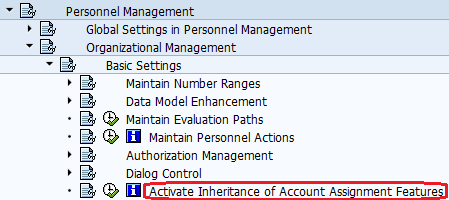 SAP R/3 IMG Path:– SPRO –> IMG –> Personnel Management –> Organizational Management –> Basic Settings –> Activate Inheritance of Account Assignment Features