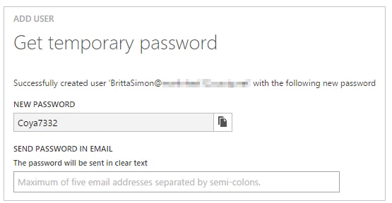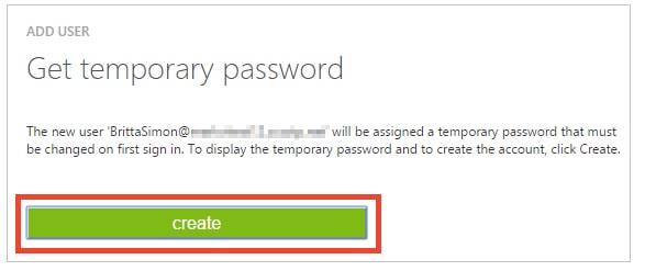 a. In the First Name textbox, type Britta.b. In the Last Name textbox, type, Simon.c. In the Display Name textbox, type Britta Simon.d. In the Role list, select User.e. Click Next - On the Get temporary password dialog page, click create.
