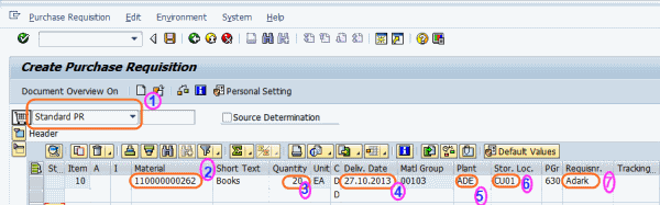 SAP R/3 Menu Path: – SAP menu > Logistics > Materials Management > Purchasing > Purchase Requisition > Create