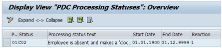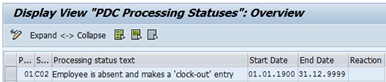 The other possible reaction value for PDC Processing Status C02 is 1. If 1 is maintained, then it doesn’t allow even creation of open time pair with just clock out data.