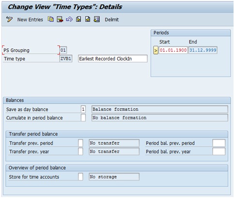 - Finally, the value of “earliest recorded clock out” time type ZVB3 and “latest recorded clock out” time type ZVB4 are 10.0000 and 18.0000 respectively.