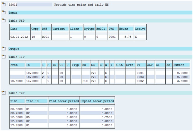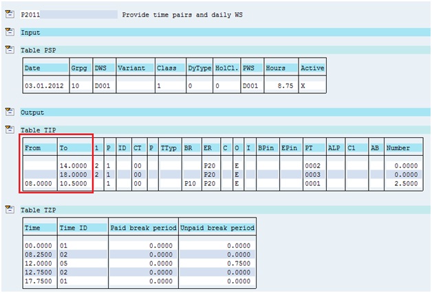 - Find all the recorded clock ins for a shift from the time pairs formed in Table TIP from function P2011. Please note the word “recorded” which I have used. It means that I am trying to find earliest or latest recorded times from the time events that have actually got recorded at the time recording terminals.