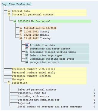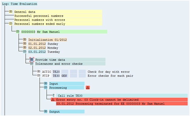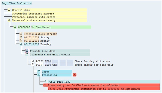 Time Evaluation Result – The time evaluation fails at PCR TD20 which points out that time pair is not error free and has clock in missing. It doesn’t allow the system to reach function P2011 which creates open time pair with clock out time. Hence, this option is ruled out.