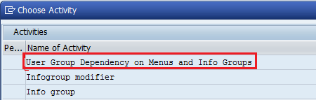 In next screen, Double click on “User group dependency on menus and info groups” and define