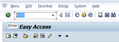 Step 1 :- Enter Transaction Code FS00 in the SAP command field and press enter