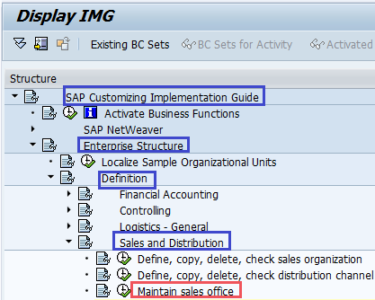 SAP Implementation Guide (IMG) > Enterprise Structure > Definition > Sales and Distribution > Maintain Sales Office