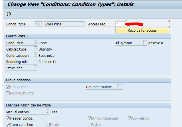 So we don’t need to create new condition type for gross price, although you can create your own starting with Z.