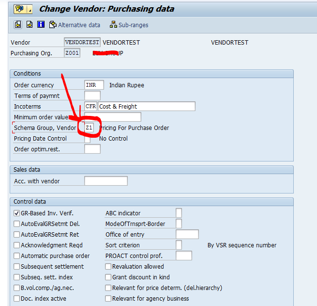 When you are going to create a vendor from XK01 in purchasing data you will find “Schema Group, Vendor”