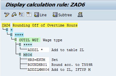 If the wage type is M806, the hours of the wage type are read using operation HRS=ENUM, then rounded off using operation ROUNDHR01 and finally added back to Table DZL using ADDZLMM806.