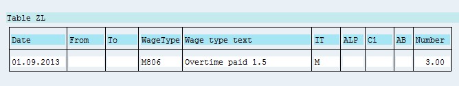 OUTZL operation will help us to query the overtime wage type for rounding off. It will be used to query wage type M806 (overtime wage type generated in our scenario) from Table DZL and then the hours of the wage type will be rounded off and added back to the Table DZL.