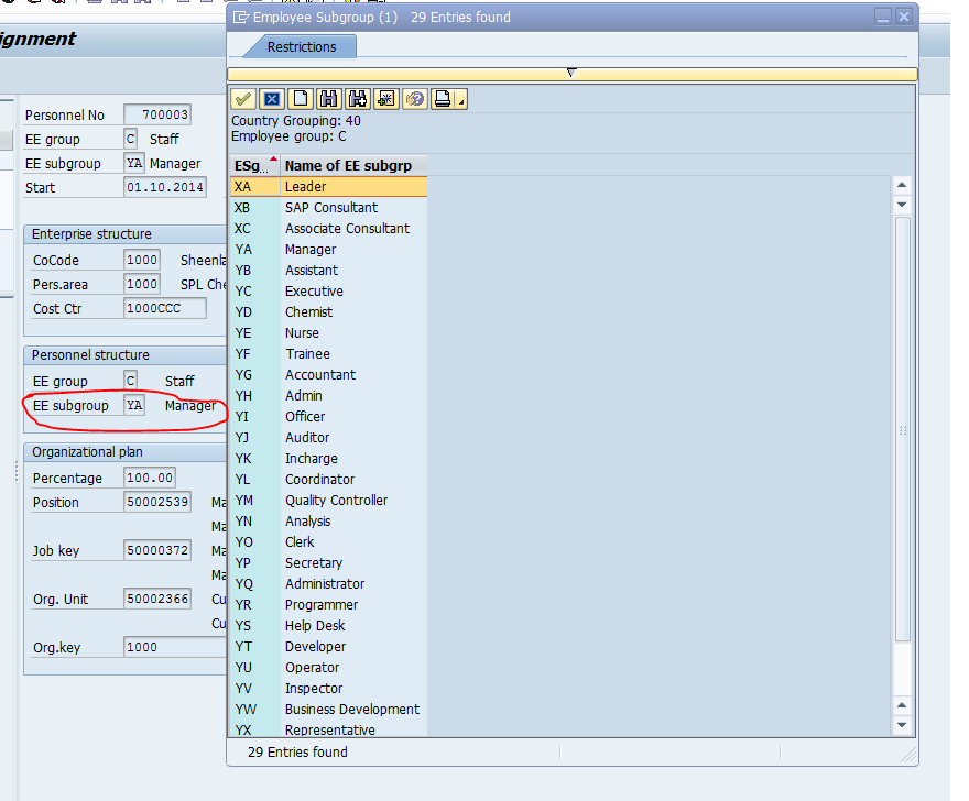 For example I created Employee group C (staff) for that I created so may Employee subgroup .The below picture shows that.