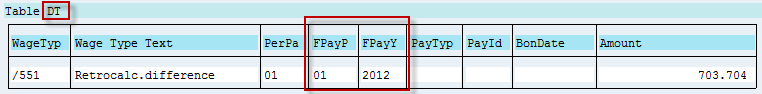 - In original period (Feb-2012), value from DT (wage type /551) will be transferred into /560
