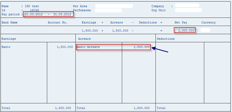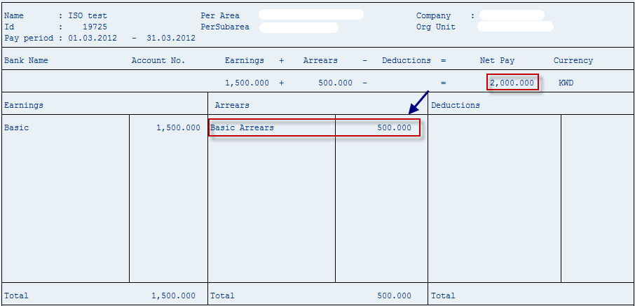 Net pay in Mar-2012 is correct: 2000 (1500 in Mar and +500 in Feb). However Arrears are wrong .