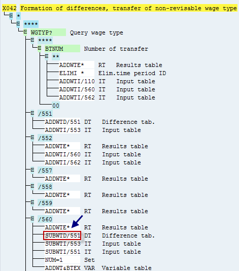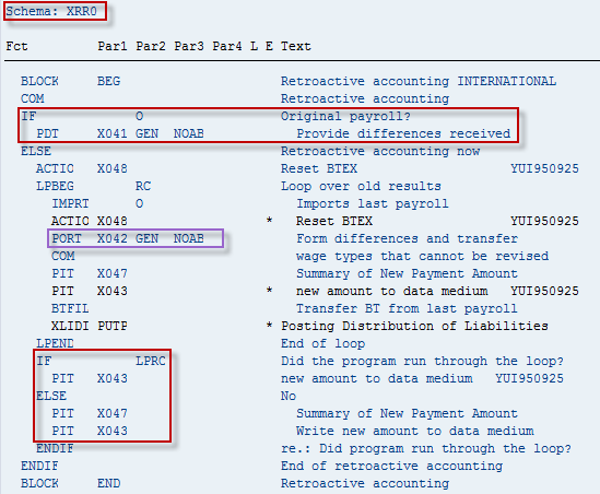 - In retro period (Feb-2012), before calling X043 (explained in Part II), X042 is executed with function Port. It brings actual Feb-2012 payroll and inserts into DT Different Table: